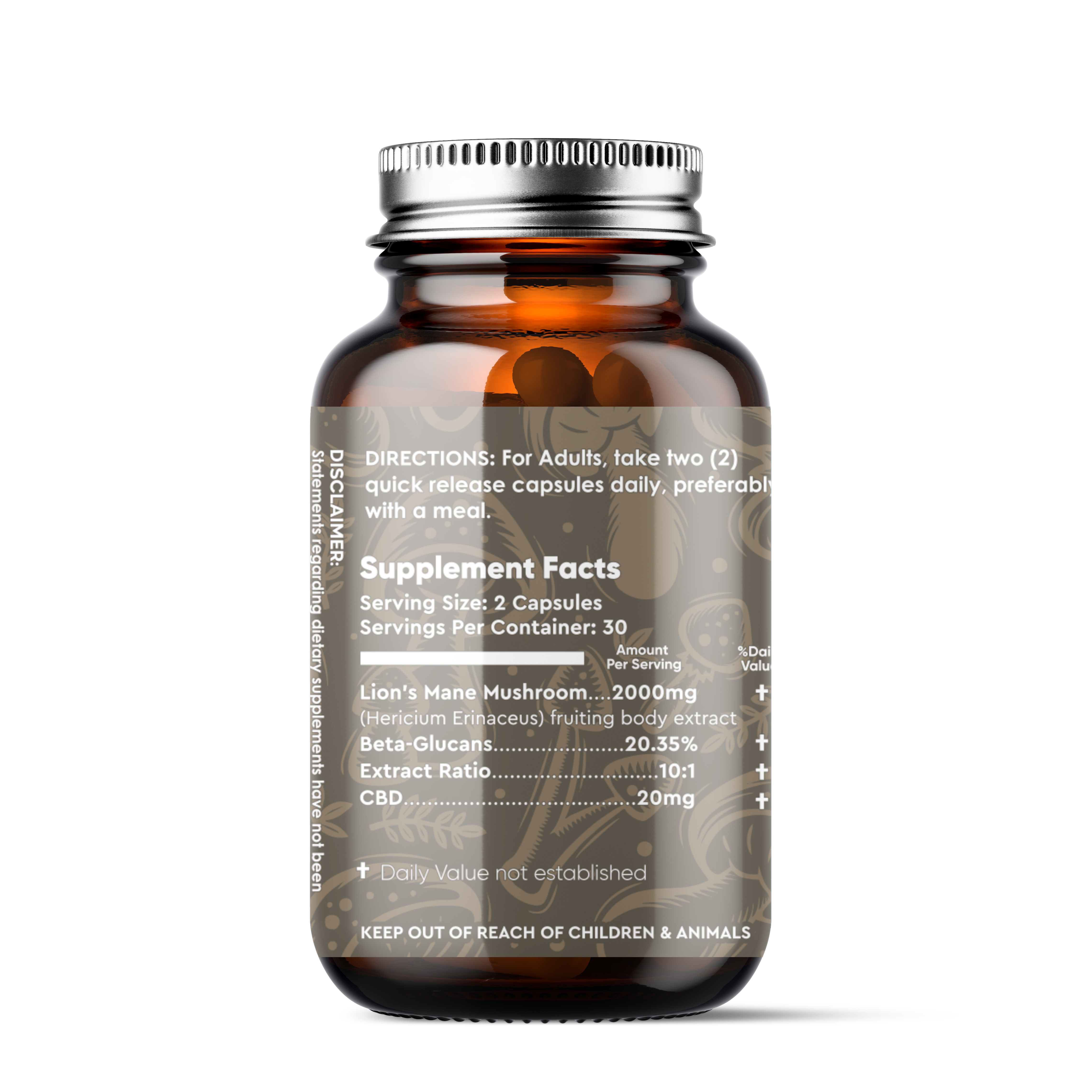 - Lion’s Mane: 1200mg 10:1 fruiting body extract