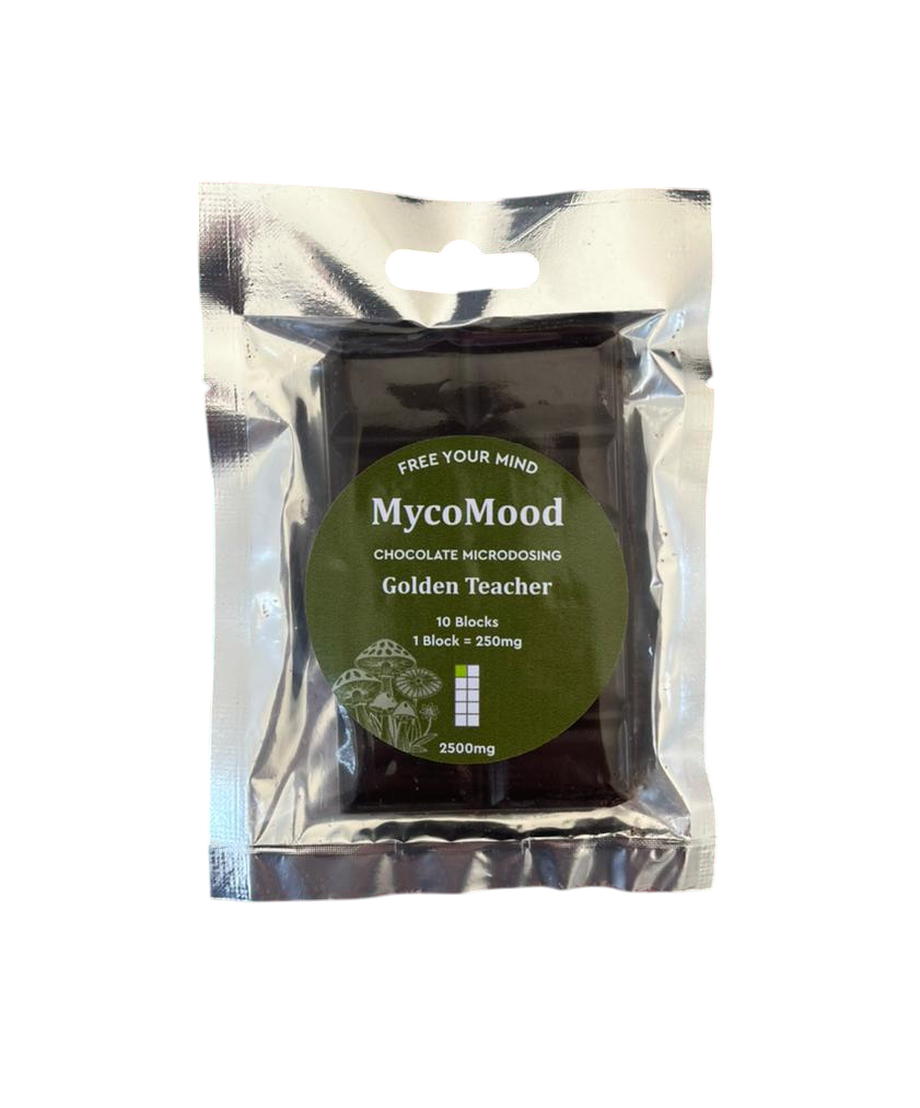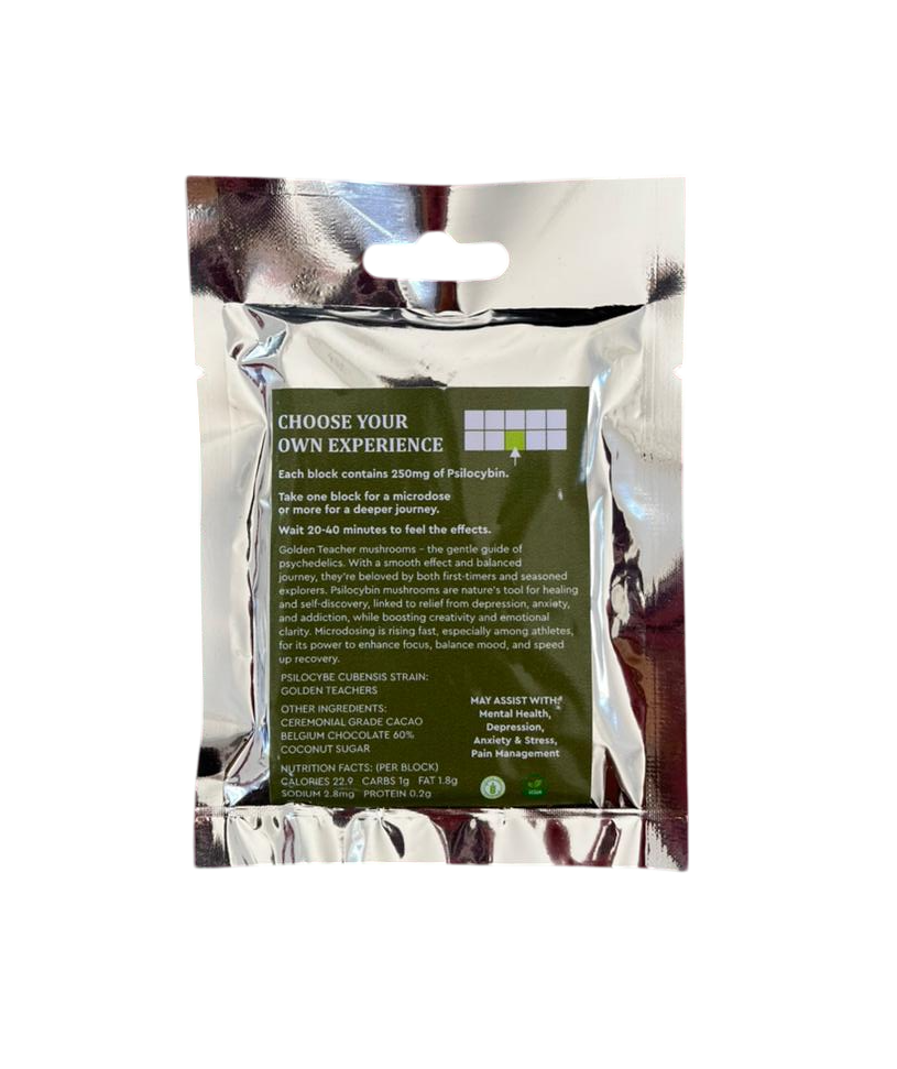 Delicious slab of Belgian Chocolate infused with Golden Teachers.